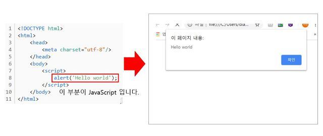 1 2 3 4 5 6 7 8 9 10 11 | <!DOCTYPE html> <html> <head> <meta charset="utf-8"/> </head> <body> <script> alert('Hello world'); </script> </body> </html> | cs |